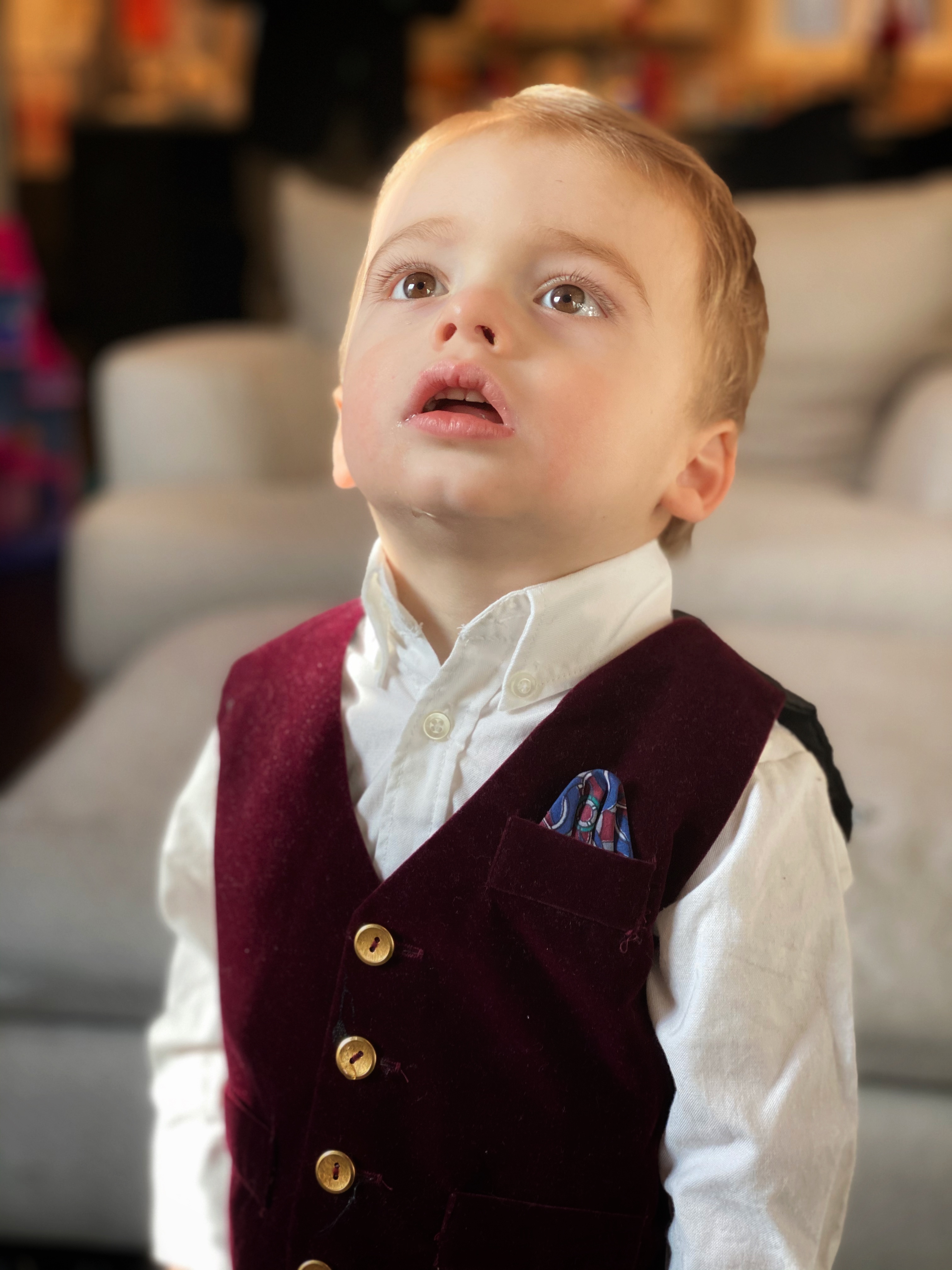 Maxwell has been under the weather which exacerbates his movement disorder. He took a face plant into the concrete so our plans were cut short but he is always an amazing sport. He cried a little, dusted himself off and helped arrange cookies for Santa – even though he nearly bit through his bottom entire lip.