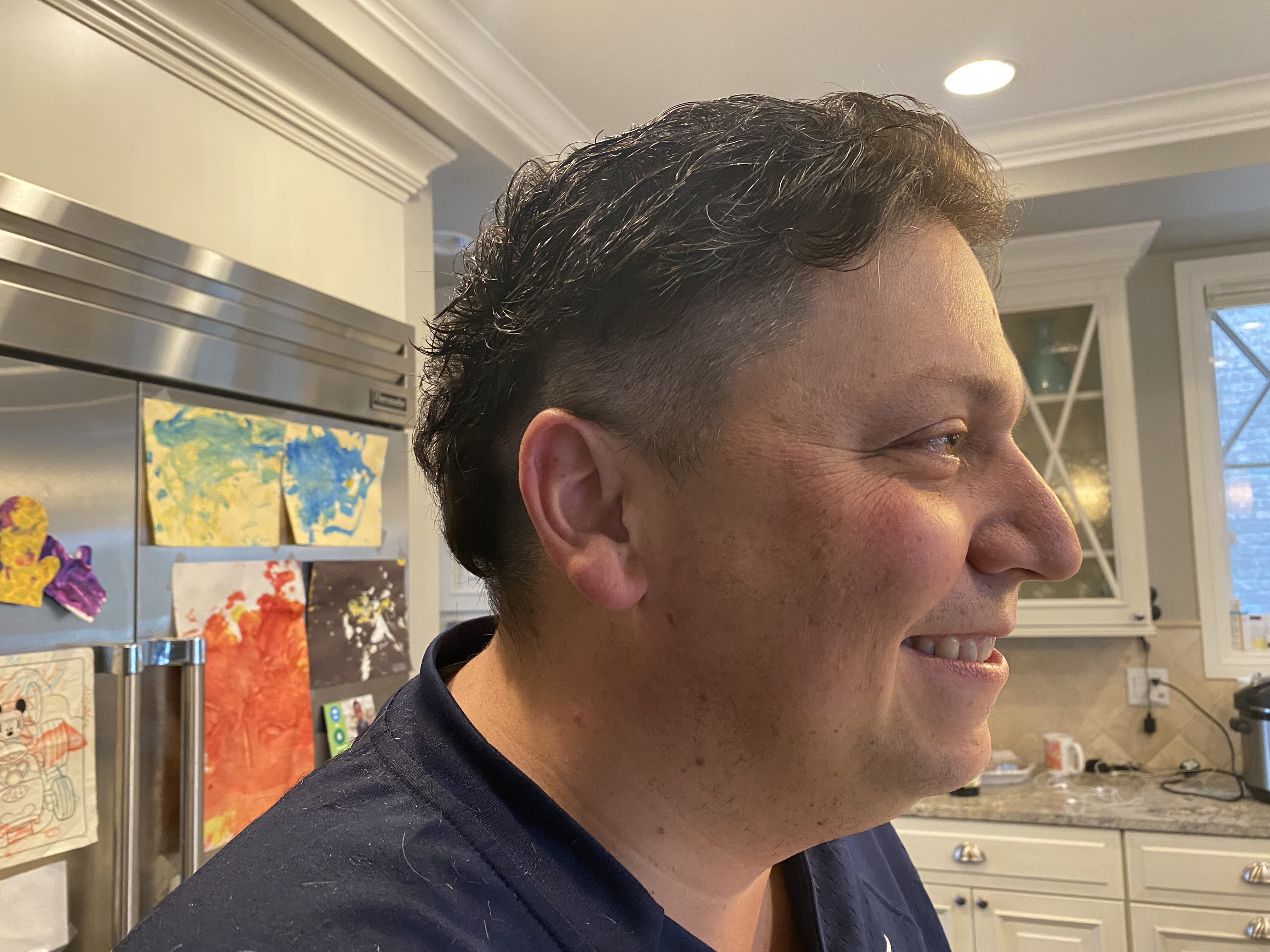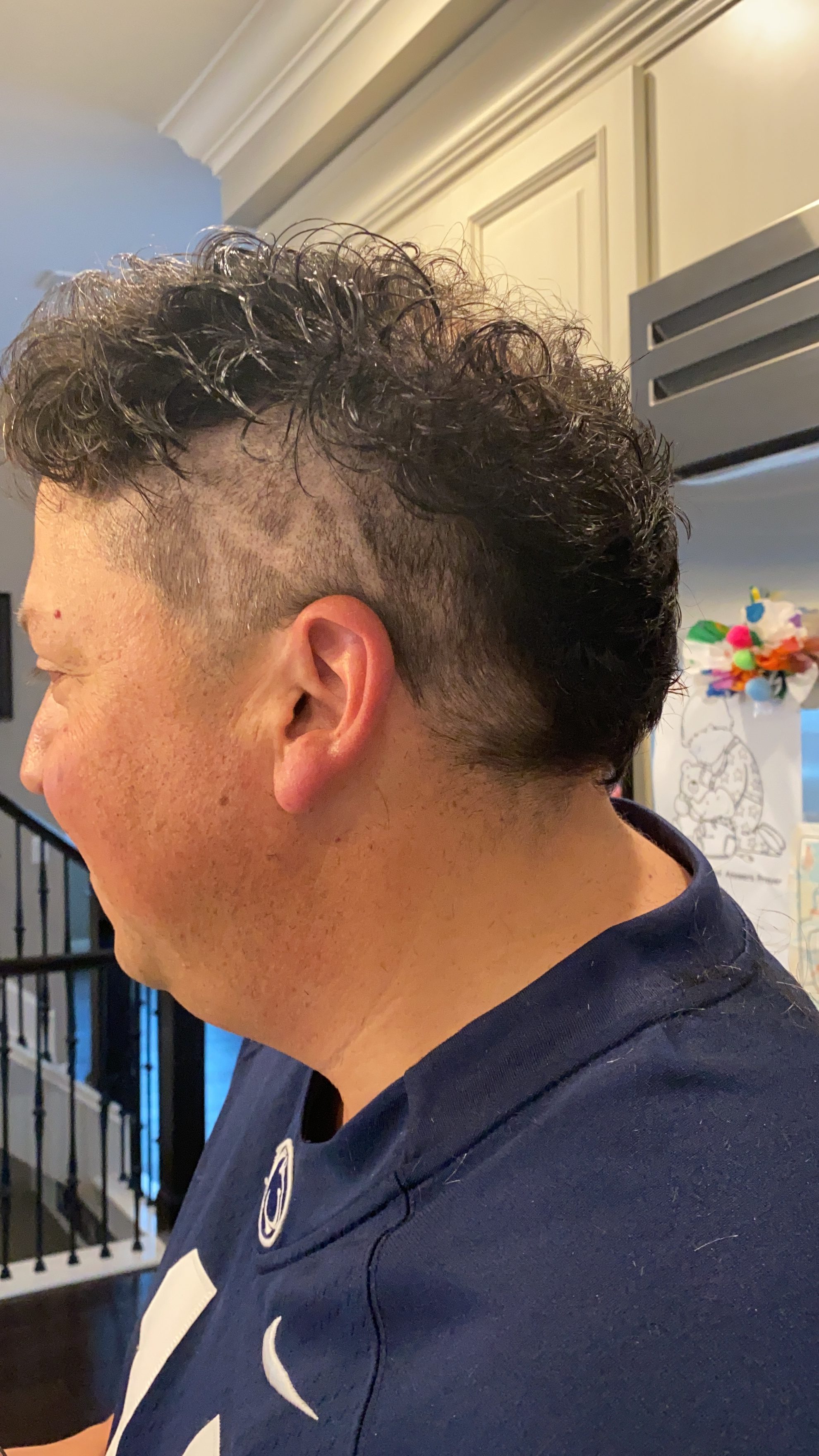 Everyone that knows Mark well would barely recognize him without short hair and a golf shirt. I gave him this mullet on FB live! I was nervous…it was my first time with a razor or clippers. I also bought the cheapest option on Amazon, but as you can see, the man looks fly.