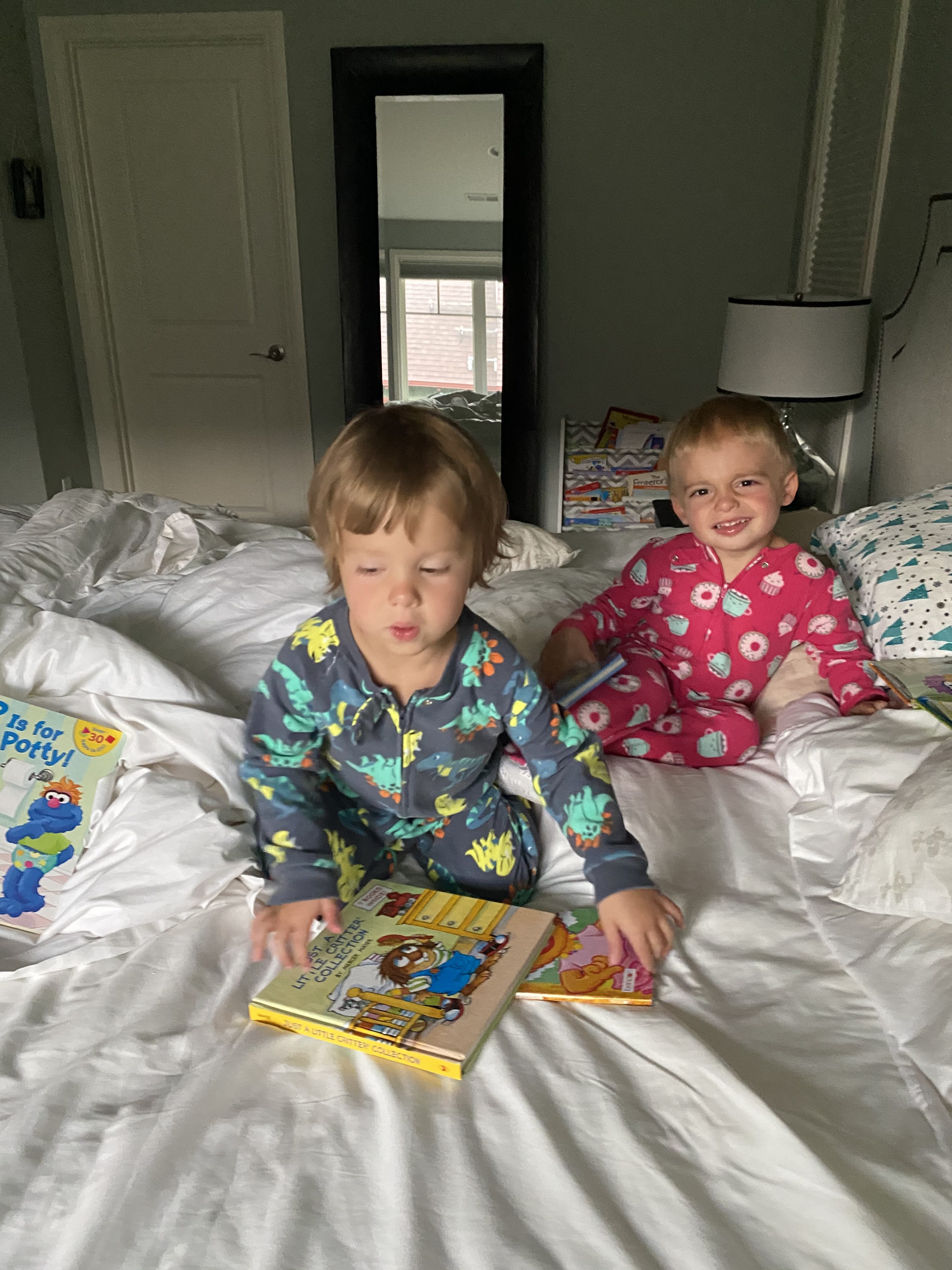 Then he wanted her clothes, too. Like any twin mother, I came to a quick compromise, I bought matching swimsuits from my favorite truck stop in Texas – Bucee’s! I also bought another pair of pink shoes. The twins are so happy to be matching.